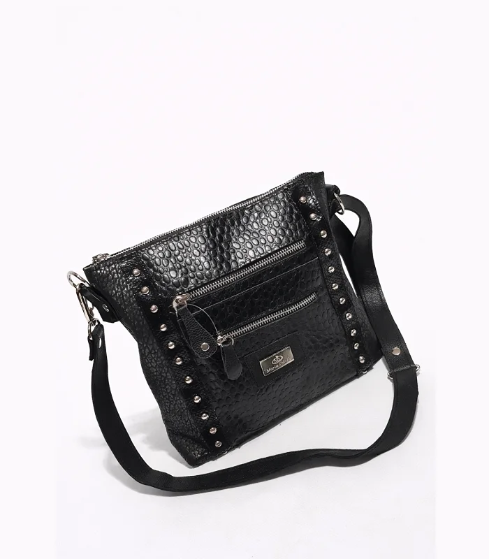 Bandolera Aylen – Negro con Textura/Peltre